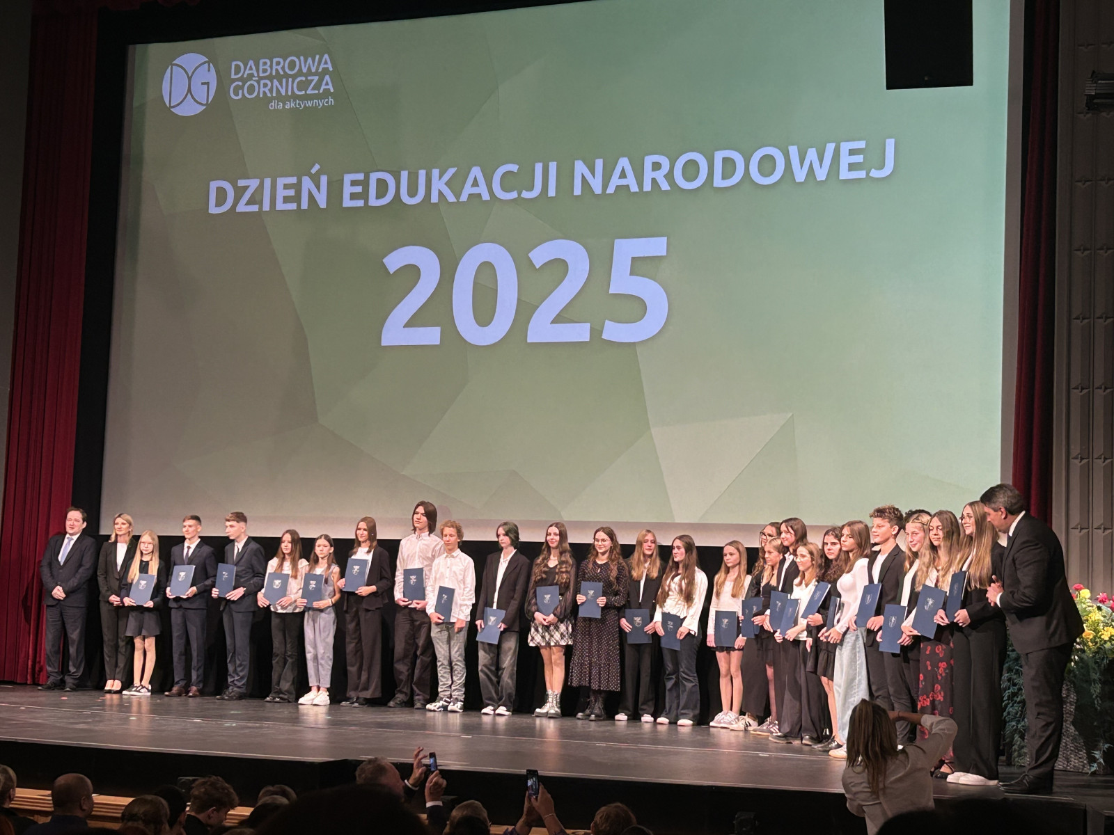 W uroczystości wzięli udział Pani Bożena Borowiec – Zastępca Prezydenta Miasta Dąbrowa Górnicza, Radni Miasta Dąbrowy Górniczej: Pani Bożena Kozak, Pan Edward Bober, Pan Marek Węgrzynowicz, Pan Piotr Ślusarczyk, przedstawiciele związków zawodowych: ZNP w Dąbrowie Górniczej – Pani Prezes Dorota Nowak – Bobrowska i NSZZ „SOLIDARNOŚĆ” w Dąbrowie Górniczej, rodzice na czele z przewodniczącym Rady Rodziców Panem Przemysławem Brzykcym oraz nauczyciele i uczniowie szkoły.
