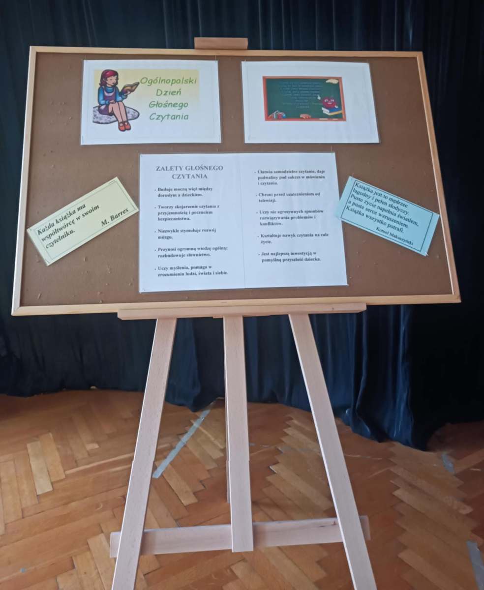 W naszej szkole w roli czytających i propagujących czytelnictwo byli: nauczyciel bibliotekarz, Stowarzyszenie Dzikich Książkarzy oraz młodzi czytelnicy, którzy z dużym zaangażowaniem popularyzowali poezję jednej z najważniejszych polskich poetek i pisarek XIX wieku Marii Konopnickiej.